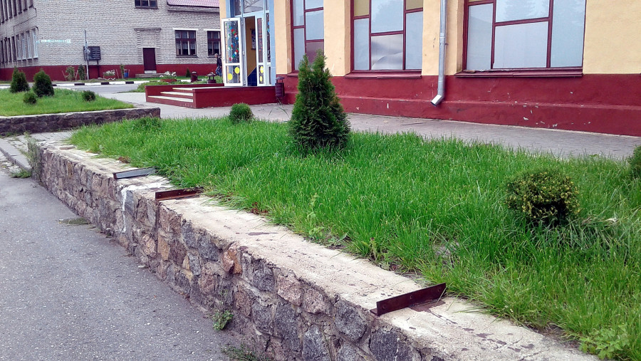 Вось на гэтым месцы перад гастраномам былі лаўкі, пра якія кажа інвалід Аляксандр Аўтух. Двайное добраўпарадкаванне: і клумбы, і месцы для сядзення: