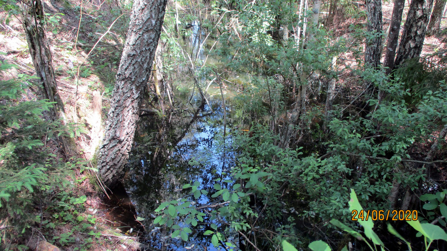 Выше бобёр возвёл плотину, создав болотное водохранилище.