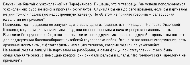 Чытач даслаў мне на электронную пошту папраўкі ў пададзеныя мной звесткі наконт дзейнасці вузкакалейкі на Параф"янава. Лічу іх істотнымі і падаю здымак пісьма без указання аўтара. З ім не спрачаюся. Напісаў тое, што ведаў. Згодны, што ён ведае больш: