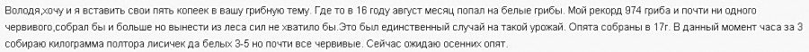 СМК, у душы ты лірык. Так падрабязна апісваеш драбніцы збірання грыбоў і восеньскага лесу, што я гатовы пацвердзіць кожнае словаспалучэнне. Усё да месца!
