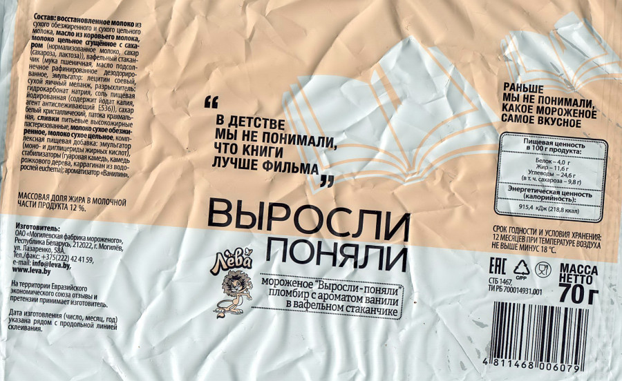 Мара, сёння жонка прыцягнула два марожаных па цане аднаго з "Капеечкі". Вось абгортка ад іх.