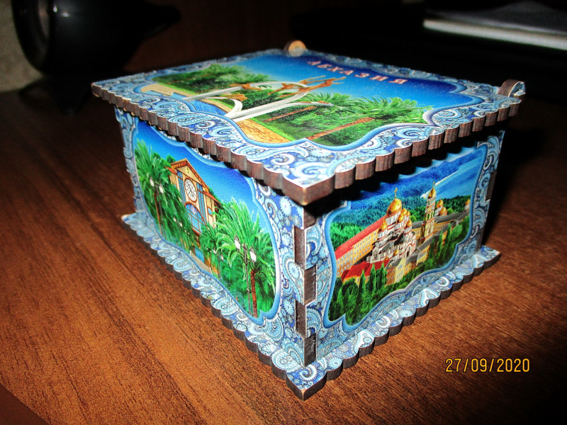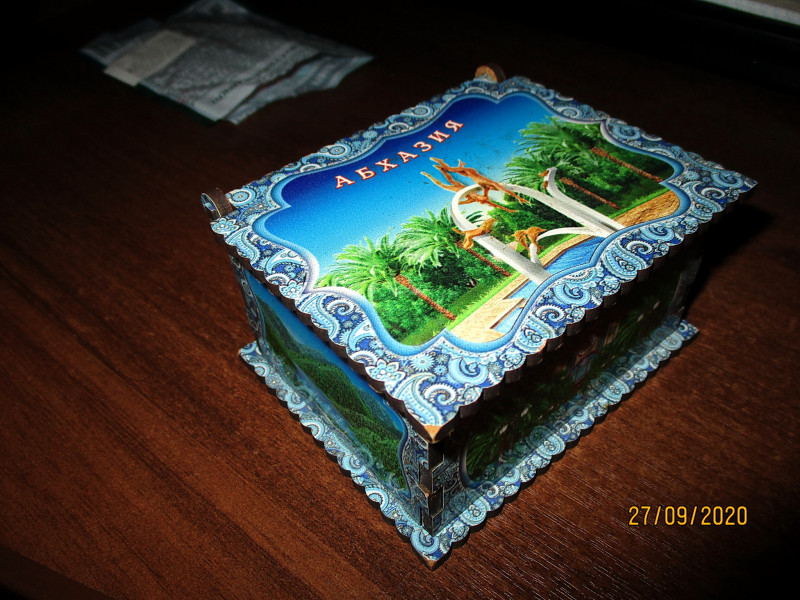 Милка, шкатулку прыцёг з Абхазіі. Што за царква на ёй намалёвана, нават не цікавіўся. Здаецца, храм пры манастыры ў Піцундзе. Звычайны сувенір: