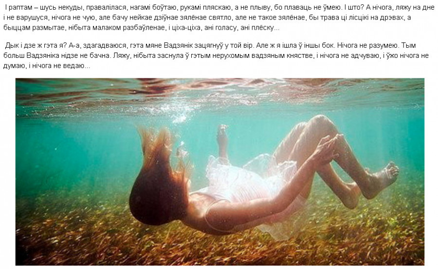 Нарэшце вярнуўся. SeRJ, дужа яскрава апісала ў мемуары "Я - тапельніца з Міхалова" Лісічонак Тамара, як сама танула. Абавязкова пачытай: https://blukach.by/post/664
