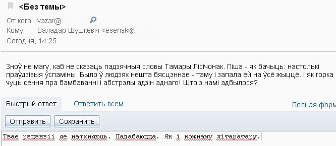 Такой зімы, бы ў нашым Міхалове, на Данбасе не было, і такіх гурбаў пад дахі, і завірухі. Дык зімовымі вечарамі згадвалася мне бярозка каля брамы ўся белая ад шэранню, і куры пад прыпечкам, і мая любімая печ з кажухамі ды пухнатымі падушкамі.