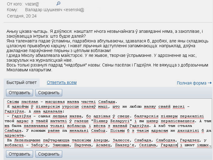 Не нравилось мне ещё, как он не очень ценил мой труд по субботам. Перед отъездом на вечернем автобусе домой я ещё успевала вымыть полы в доме, а он в своих огромных сапожищах мог спокойно прогуляться по чистым половицам. Однажды мне попутно захотелось вытереть пыль на висевших по стенам портретах. Только дотронулась до одного из них, как вдруг с тыльной стороны рамки посыпалась куча писем и поздравительных открыток. Взглянуть на письма совесть не позволила, а вот на недавней открытке я увидела самое настоящее любовное письмо. Какая-то женщина Алена очень душевно обращалась к нему (это в его-то 70 лет с гаком!), напоминала Миколе о каком-то очень большом церковном празднике и о свидании с ним в этот день в Лепеле. И тут мне вспомнилось, что недавно дочка деда Миколы после его возвращения из Лепеля слегка навеселе поносила при мне какую-то старуху.