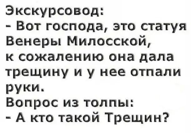 Несцерка, стары савецкі анекдот. Але прачытаў яго з тваёй падачы і шчыра пасмяяўся.