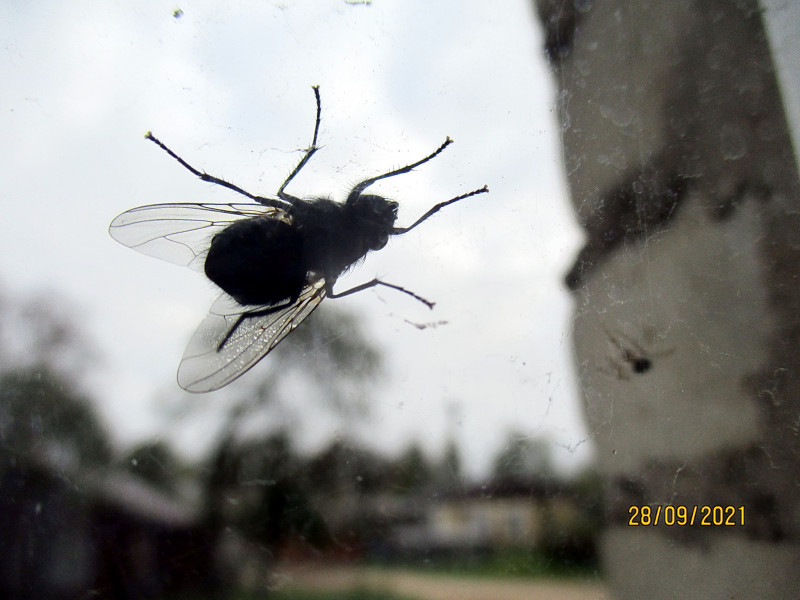 Муху можно словить, но трудно. Только резким взмахом руки и последующим сомкнением ладони. Она не подпускает к себе посторонние движущиеся предметы. А когда сидит на окне снаружи, совсем не боится или не видит приближающегося к ней фотоаппарата со стороны брюха: