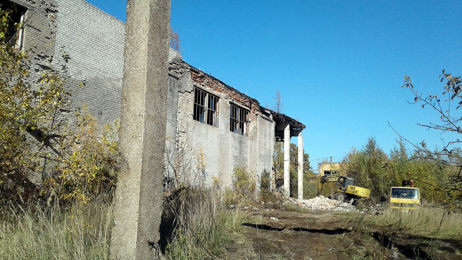 Адна з прычын разбурэння майстэрні, як даведаўся, тая ж, што я і меркаваў, аварыйны стан: па ёй блукаю не адзін я, а дзеці і нават дзяўчынкі - раптам абрынецца на галовы. Але галоўная прычына зносу тое, што за зямлю пад непатрэбнай пабудовай трэба плаціць столькі, колькі яна будзе стаяць. Вядома, аргументы важкія, а ў ва мне плача ўсяго толькі настальгія па 9-гадовым рабстве пад дахам, які сёння-заўтра таксама ляжа на зямлю. Заўтра пакажу недабураную майстэрню знутры.