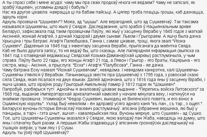 Вазарава напрацоўка наконт паходжання прозвішча Шушкевіч: