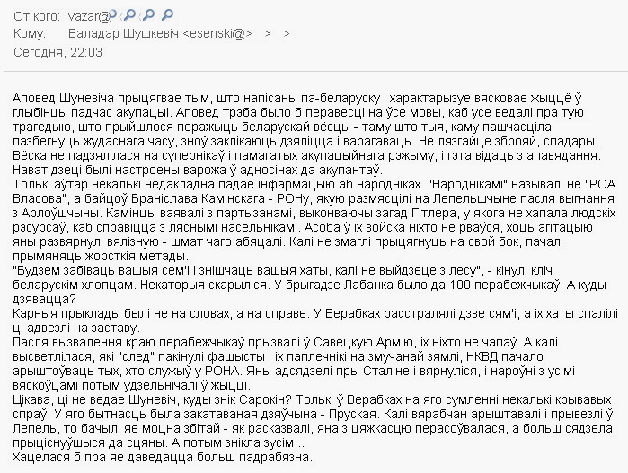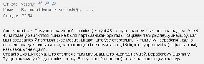 Игорь Самохвалов, Анатоль Шуневіч пракаментаваў тваё выказванне наконт таго, што на пастаўленых партызанамі мінах маглі падарвацца сяляне.