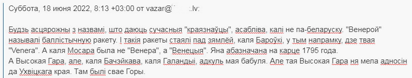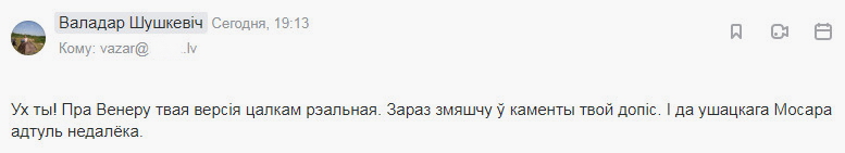 Версія Васіля АЗАРОНКА з Юрмалы наконт паходжання тапоніма "Венера" і адказ на тое Блукача ВАЛАЦУЖНАГА: