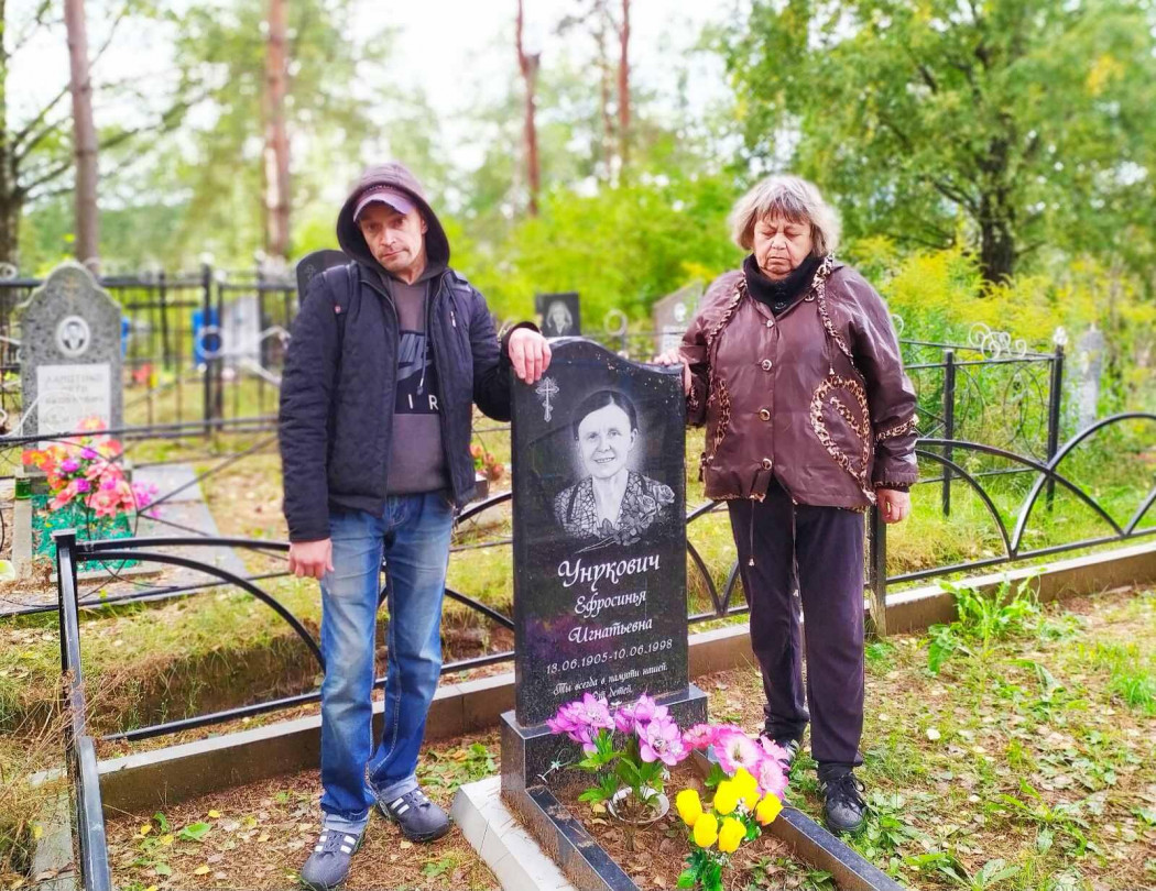 КИКИ, зірнуў на фота помніка бабы Проскі і знайшоў у сваім пустым шлянні памылку: яе прохвішшча па-руску надта "перерюсіл" - Внукович. Аказваецца, і на замежнай мове яна застаецца Унукович.