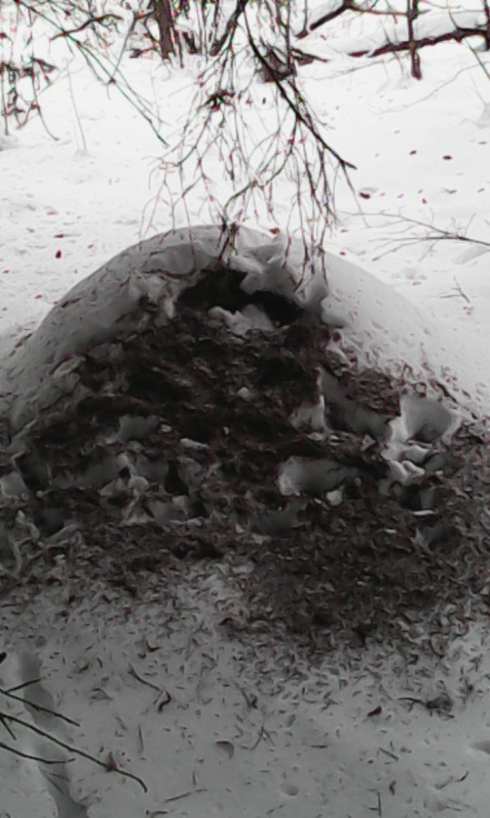 Мурашнік, раскапаны нейкім зверам, магчыма лісіцай. Я бачыў лісіцу каля Монцінавай гары, але не здымаў, таму што яна была далёка і сярод хмызняка.