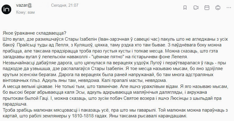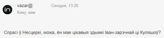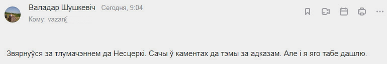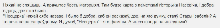 Несцерка, і гэты твой камент яму дашлю. Мне ён спадабаўся. А вось што Вазар адказаў на камент папярэдні:
