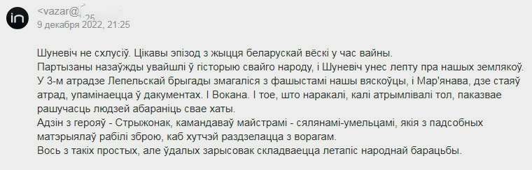 Усе тэксты Дзеда Шуневіча якасныя, і іх галоўная каштоўнасць у тым, што яны паказваюць вайну вачамі простага народа, у адрозненне ад шматлікай папярэдняй літаратуры, якая дайшла да чытача праз сіта палітызаванай цэнзуры.