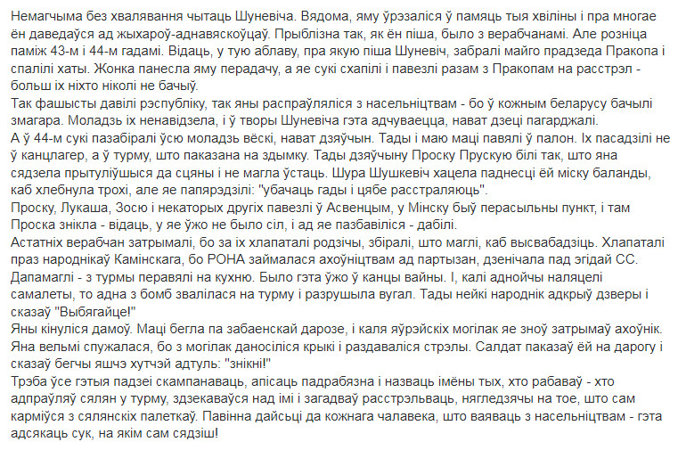Короткая июньская ночь быстро пролетела, и я проснулся, когда солнце поднялось довольно высоко. За оградой стоял лепельский полицай из Валовой Горы Яська Мацкевич со своей женой Анэлей. Они о чём–то разговаривали с моей мамой.