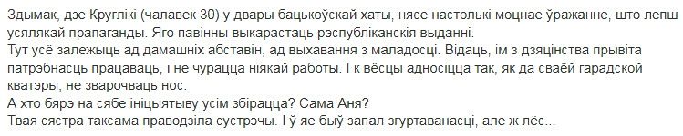 Адным махам скажу, як Аня апісвала сямейную эпапею: урыўкамі ў "Аднакласніках" сярэд ночы і хутка адсылала іх мне, каб яны не "ўцяклі" з кампу, што абавязкова здараецца ў пачынаючых літаратараў.