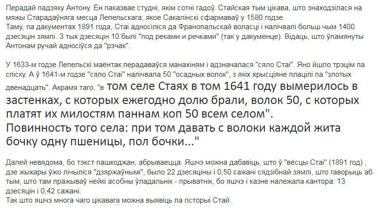 Ближайший населённый пункт: агрогородок Стаи Лепельского района Витебской области.