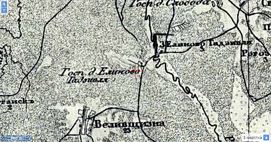 Блукач провёл экскурсию по Гадивле, в которой прошло его детство и школьные годы. Походникам интересно было узнать, что деревня на нынешнем месте обосновалась лишь с началом коллективизации из выселенных с насиженных мест хуторских хозяйств. Хотя историю свою весь вправе считать с давних времён. На дореволюционных картах она именуется застенком Елиново, и в скобках заключено второе название (Гадзивля). Располагается на правом берегу Эссы в отдалении от Борисовского тракта. А на месте современной деревни на левом берегу и впритык к тракту обозначен господский двор Елиново с приставкой в скобках (Гадзивля).
