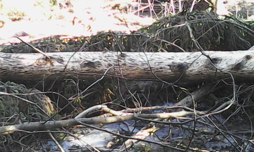 Прошёл совсем мало, как заметил бобровое поселение – две хатки из хвороста, соединённые между собой галереей. Полез на более высокую.