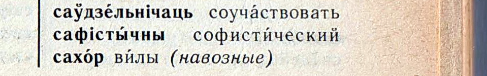 Что касается слова "сахор",означающего вилы,то оно меня поставило в тупик. Сразу подумалось - это явно не словарное,а,скорее всего,какое то местное слово. Я ведь вроде неплохо знаю родной язык,самых известных наших белорусских авторов я в оригинале читал,но никогда этого слова не встречал. Небось Блукач "вынайшоу" это слово где то в разговоре с людьми и решил им воспользоваться. Полез в словарь и ... Ни фига себе,-есть такое слово! Век живи - век учись. Настолько интересно стало,что попробовал вникнуть. Оказывается, в любом языке мира есть ,так называемые,"редкоупотребляемые" или "малоупотреблямые" слова и термины. Вот это слово именно такое. У меня на родине я его никогда не слышал. У нас говорили -"вилы", или,чаще всего - "вилки". Безотносительно того,для чего они предназначены. Вот и подумалось мне,что это слово имеет хождение только в какой то конкретной местности. Вот вам пример. Не знаю как сейчас,но во времена моего детства у нас практически не употребляли слова крыса. Крыс называли "смаллянками". Одна соседка другой -"Ай,у мяне смаллянка у пограб ускачыла,баюся туды лезць!" Когда я уже жил в Лепеле однажды в разговоре с соседями я по инерции употребил это слово. Так на меня глаза выпучили - какая такая смаллянка? Никто такого не слышал. И в словаре я его не нашёл. Значит наше местное. Откуда взялось? Первая мысль такая - Смоленщина рядом. В паре десятков километров. Но всё равно интересно,кто и в связи с чем стал так крыс называть?