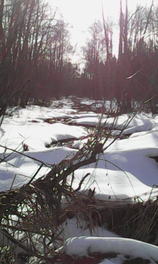 Оказывается, даром с утра радовался, что лёд растаял, и сегодня не придётся проваливаться в полыньи. Надо сейчас искать колоду для переобувания, благо их много навалял прошлогодний ураган.