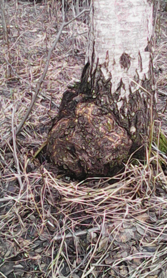 И случилось чудо – впервые в жизни целебную чагу нашёл, если можно так считать, когда до конца прошлого года её вообще не искал. А сейчас сразу две попались – большая и маленькая. Хорошо срезались легким ударом топорика.