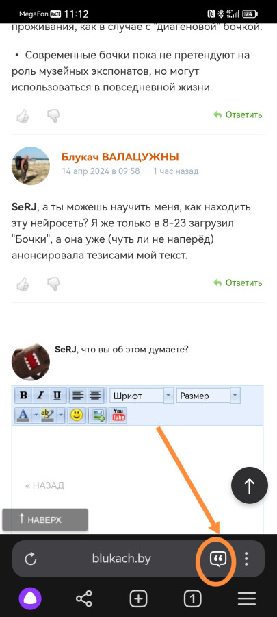 SeRJ, сын помог. Оказывается, Яндекс браузер уже стоял в моём смартфоне, а я этого не понимал. Начал играться с роботом евросетей. Очень интересно, а иногда и немножко смешно, как он трактует действия героя повествования. Но в подавляющем большинстве случаев объясняет всё правильно. Аж трудно поверить, что тезисирует замысел автора не опытный критик-литератор, а электронный робот. И так моментально!