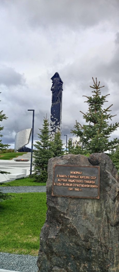 Марцiн , памятник находится в 30 км от города, ближе к Гатчине, рядом с Киевским шоссе, место красивое. Во время войны якобы на этом месте расстреливали мирных жителей. Но по моему во время блокады города, нет места вокруг города где бы не расстреливали мирных жителей. Место подобрали шикарное.