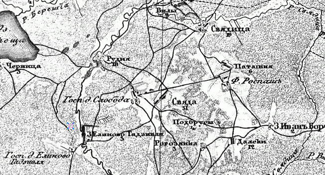 Затое старыя карты расплюшчылі мне вочы на своеасаблівую назву вёскі Гадзіўля. Па-руску яна пішацца з літарай "з" пасяродзіне слова: Гадзивля. І не скажаш, што пры перакладзе з беларускай мовы забыліся прыбраць "з", бо блізка вёска і рака Свядица пазначаныя без "з" пасля "д". І на кожнай дарэвалюцыйнай карце паселішча мае двайную назву ў дужках: на цяперашнім месцы знаходзіцца "господский двор Елиново (Гадзивля)", а на супрацьлеглым беразе Эсы - "застенок Елиново (Гадзивля)". Гэта з савецкіх картаў прыбралі "з", думаючы, што яно выпадкова перайшло з белмовы. СЕНСАЦЫЯ!