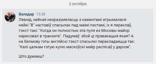 Блукач ВАЛАЦУЖНЫ, каменты "хрэна" выдаленыя, а ці растлумачыў табе Адмін адкуль яны браліся?