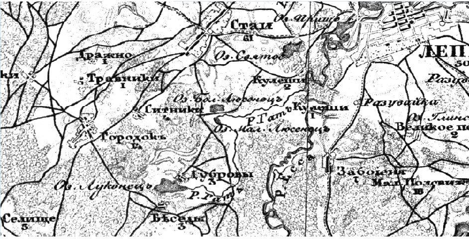 Блукач ВАЛАЦУЖНЫ, звярні увагу што на розных старых мапах рэчышча ракі Гаць пазначана па рознаму. На адной рака праходзіць праз Малы Люсінец, а на другой злучаецца з рэчкай з Вялікага Люсінца. Магчыма рэчышча у тыя часы было вельмі забалочаная і раздзялялася на некалькі рукавоў, таму дакладна вызначыць яго размяшчэнне было складана. Таксама на мапах пазначана два паселішчы з назвай Куляшы.