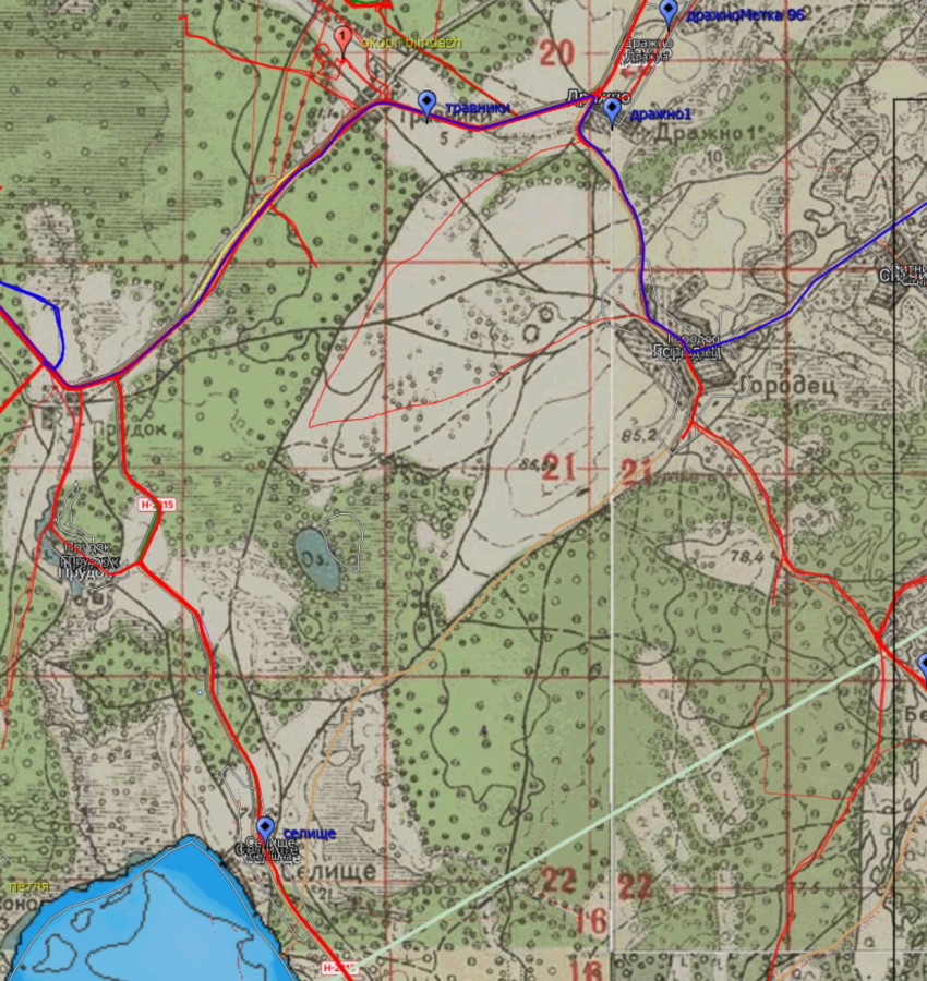 Блукач ВАЛАЦУЖНЫ, я пазначыў на здымку месца дзе раней была дарога з Гайка на