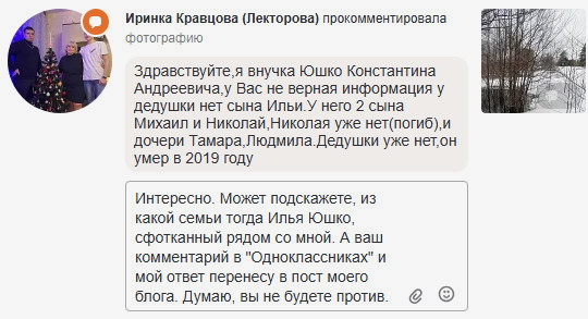 Юшкам повезло. В том смысле, что моими публикациями об этой деревне заинтересовался житель Санкт-Петербурга Антон Константинов из рода Юшко, далёкий представитель которого когда-то основал Юшки.