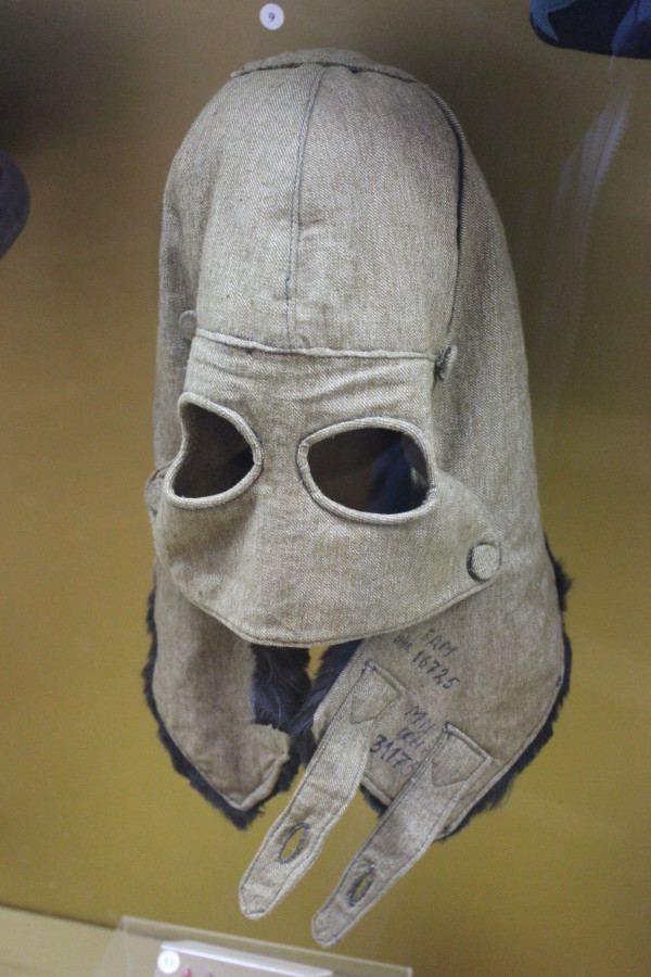 Виктор Ленчевский, по советским фильмам помнятся кожаные шлёмы лётчиков. А этот тряпчатый. Зато утеплённый мехом. Номерной.