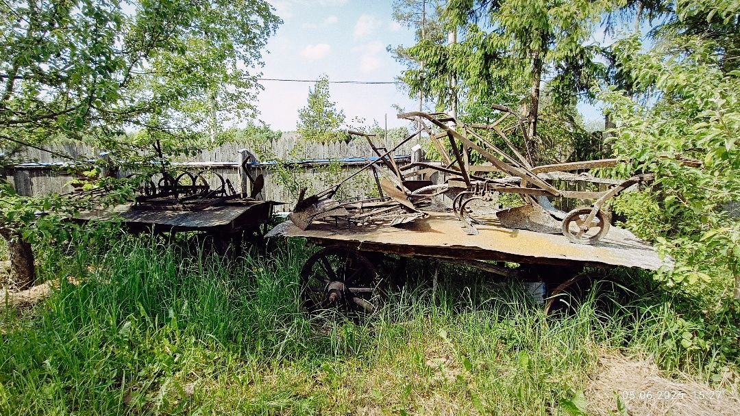 В общем, мы готовы к поездке на транспортном средстве с живым мотором. Не хватает лишь, так сказать, кузова. Подводим «мотор» к сразу двум телегам или прицепам, загруженным орудиями труда, которые необходимо поочерёдно отвезти на место проведения земляных работ.
