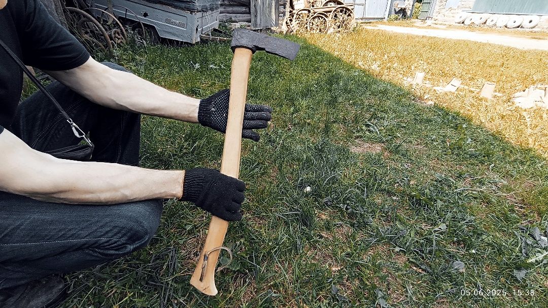 - Может она и настоящая, но только сам топор, - отвечаю. – А рукоять я приделал, чтобы можно было в работе по хозяйству применить.