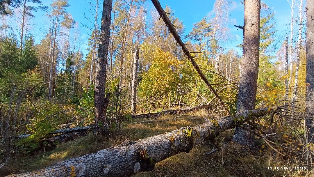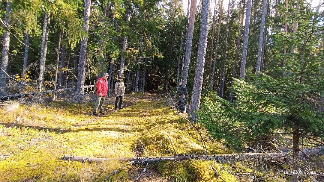 С обеих сторон насыпь обступает сосново-еловый густой лес. Если всмотреться в чистый толстый мох, можно под ним определить огромные прямоугольные выемки грунта до метра глубиной – добывали стройматериал для основания пути. И хотя через насыпь ветер навалил гигантских сосен и елей, всё равно на всём протяжении вырубки вдали видно светлое пятнышко солнечного света. В него как бы упирается насыпь. Так оно и есть. Там начинается давняя делянка и теряется полотно – сравнивается с окружающим ландшафтом.