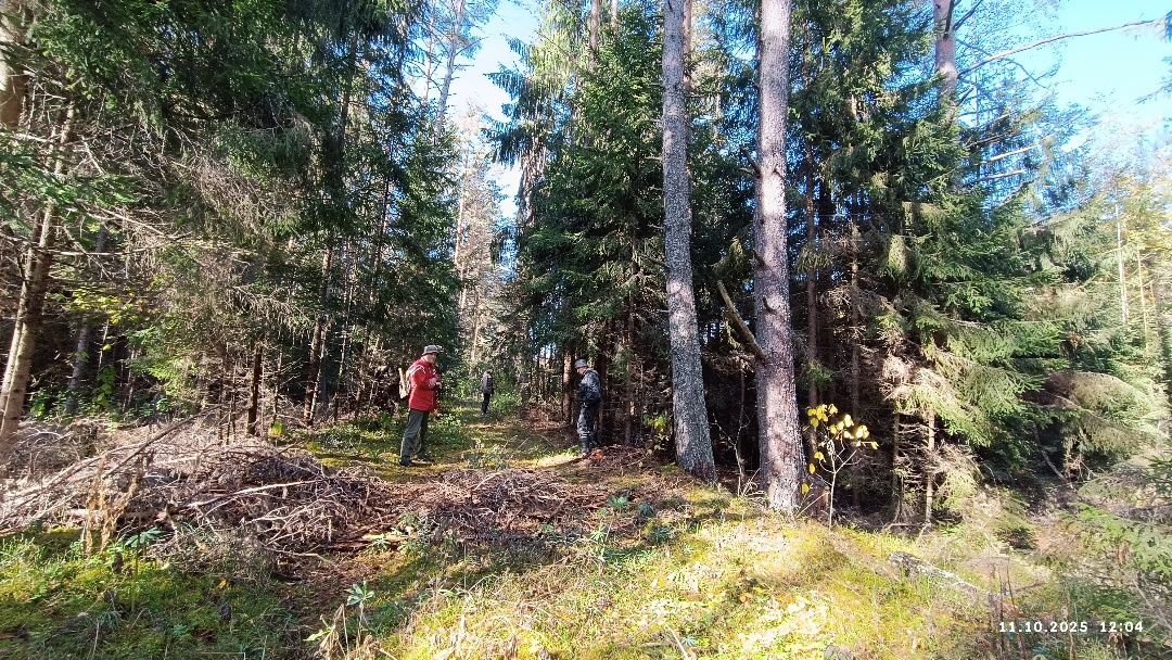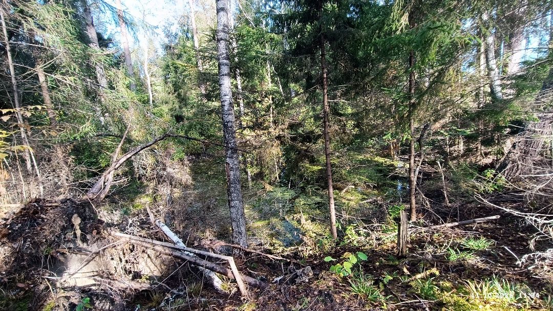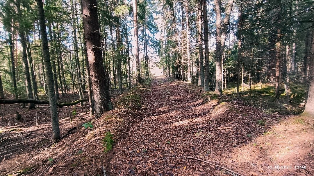 И вдоль лесной дороги есть заслуживающие внимания объекты. Первый – ровный канал, параллельный насыпи.