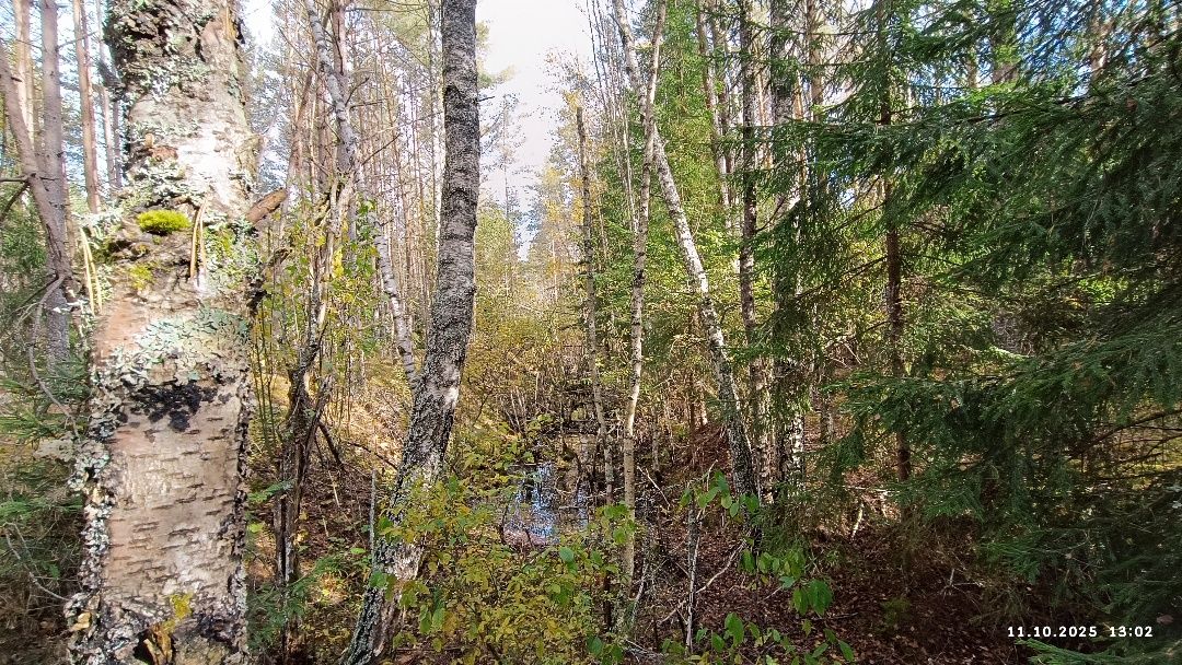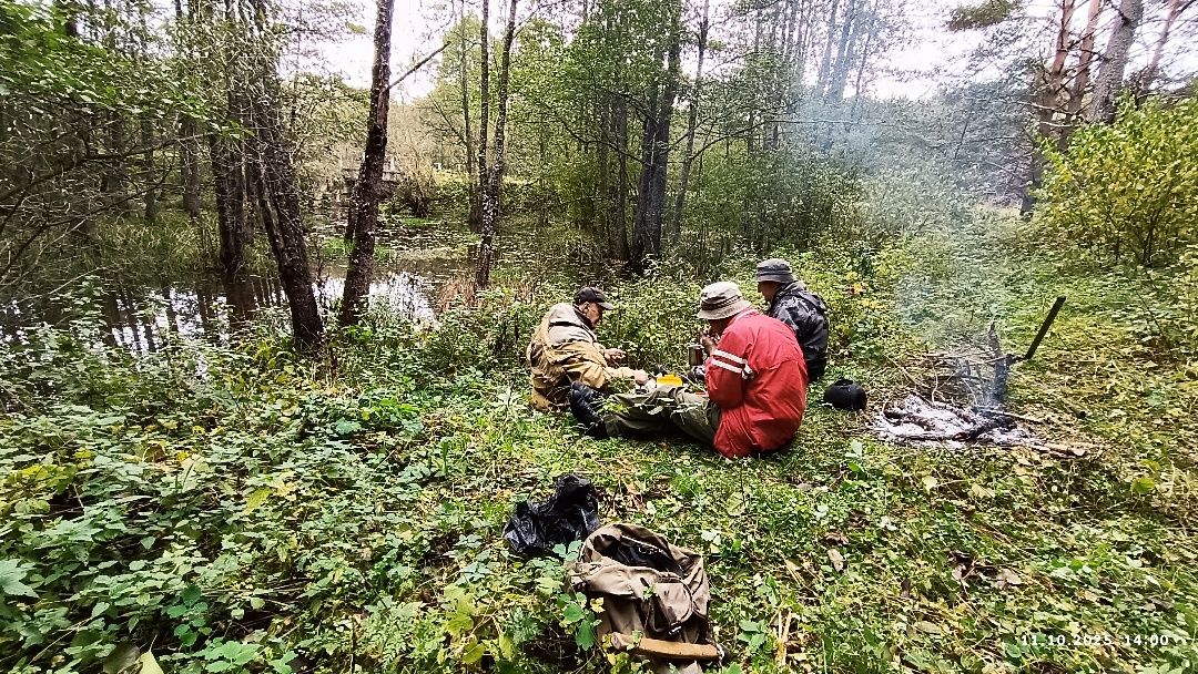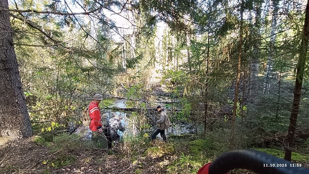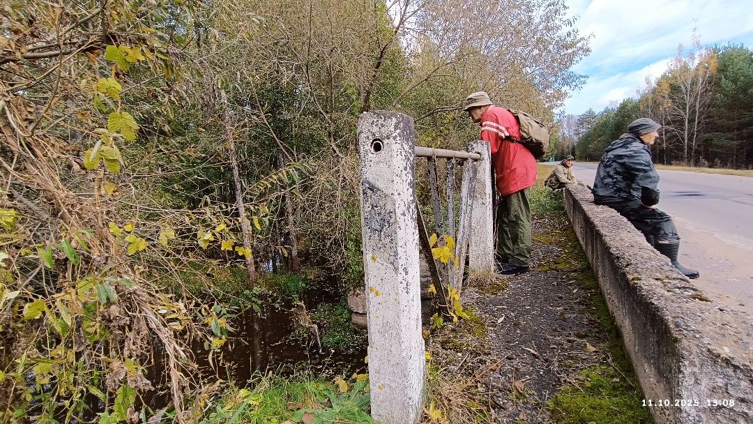 Немного прочесали окружающий ветро- и лесоповал, представляющий бурелом, в поисках третьей воронки. Не найдя её, возвратились на железнодорожную насыпь и пошли по ней к речке Прудовской. Знали, что мост над ней так и не был построен. Однако надеялись по вырубленным и переброшенным с берега на берег жердинам преодолеть водоток. Но он представился непреодолимым болотным разливом.