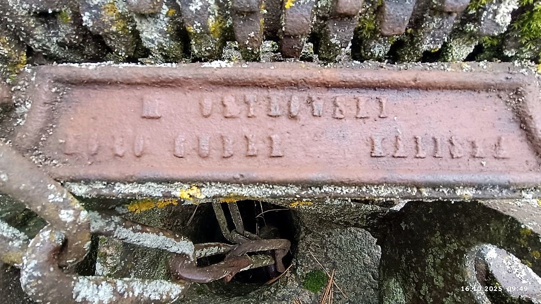 На нём хорошо сохранилась отливка с фамилией производителя и названием агрегата: «К OSTROWSКI KOLO RUBKA KALISКA».