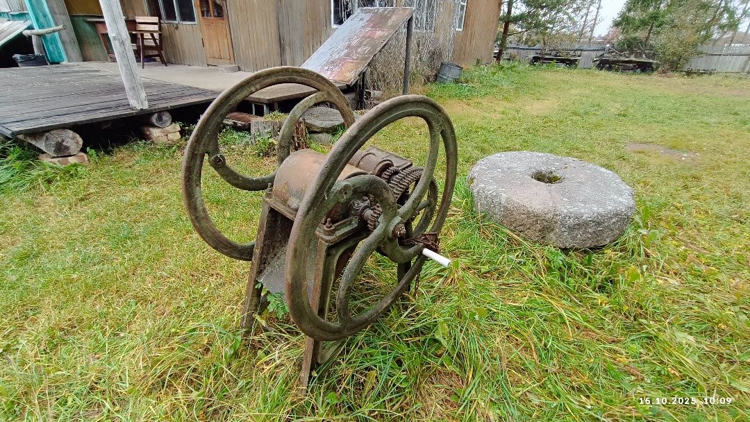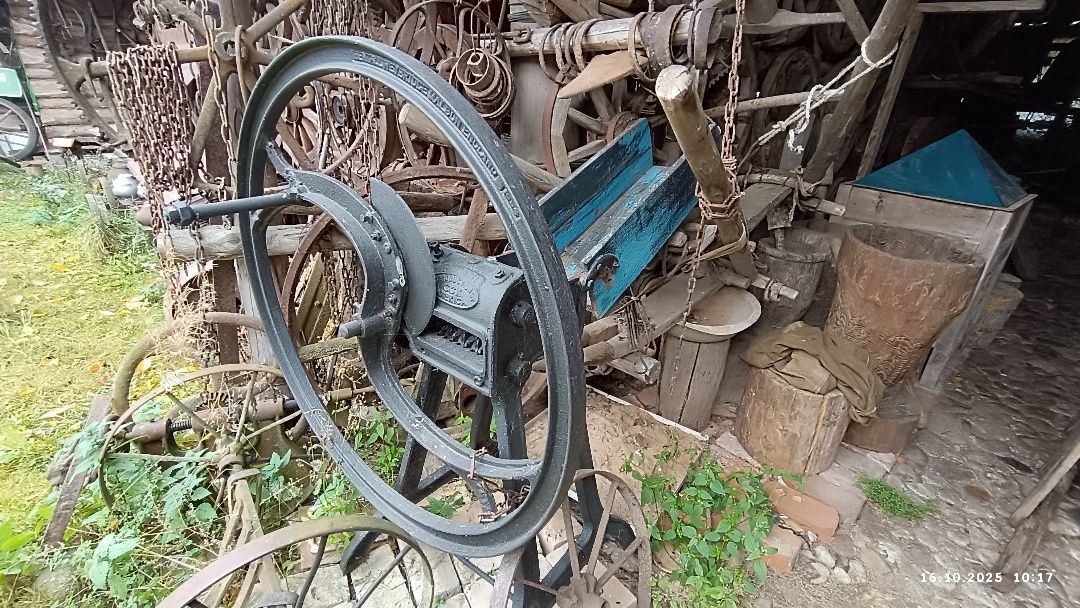 Эту соломорезку я притащил из Западной Беларуси, не помню, из Докшицкого или Глубокского района. Там крестьяне в довоенные времена жили зажиточно, имея возможность механизировать сельский труд по максимуму.