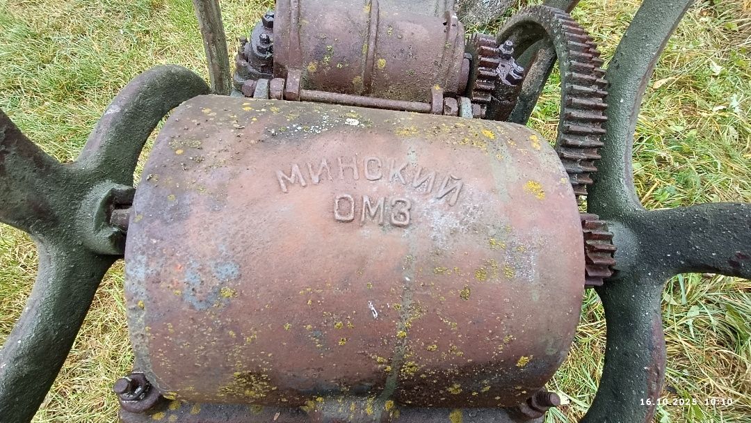 Інтерес её заключается в штампе надписи: изготовлена на Минском опытно-механическом заводе. А ещё интереснее становится экспонат, когда узнаёшь, что сие предприятие работает с 1962 года. Вот какая молодая соломорезка, оказывается.