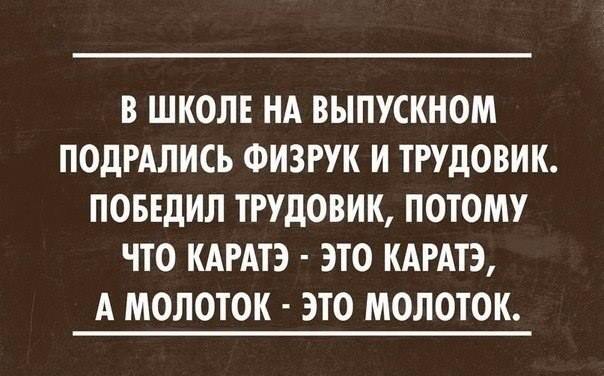 SeRJ, Gundish UAE, в моей школе с трудовиками у меня были нормальные отношения, а вот с физруком мы не находили общего языка, поскольку он был неотёсанным грубияном, а я, с его же слов, слабачком. За это он меня и мне подобных презирал и унижал, а мы его ненавидели. А со школьными хулиганами физрук дружил, поэтому они все стали физруками, не знаю только, такими ли как он.
