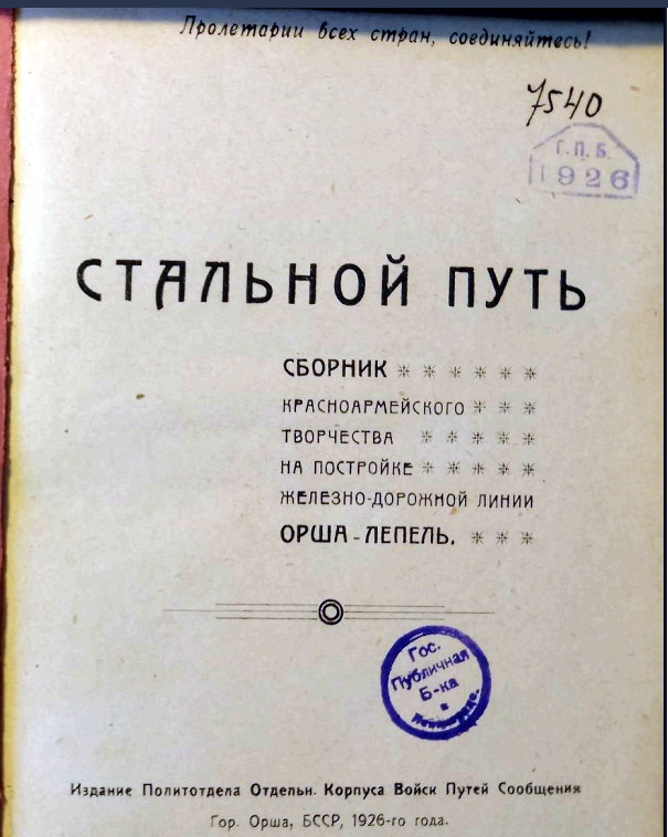 В 1926 году в Орше Политотделом Отдельного корпуса войск путей сообщения была издана книга «Стальной путь» с подзаголовком «Сборник красноармейского творчества по постройке железнодорожной линии Орша – Лепель».